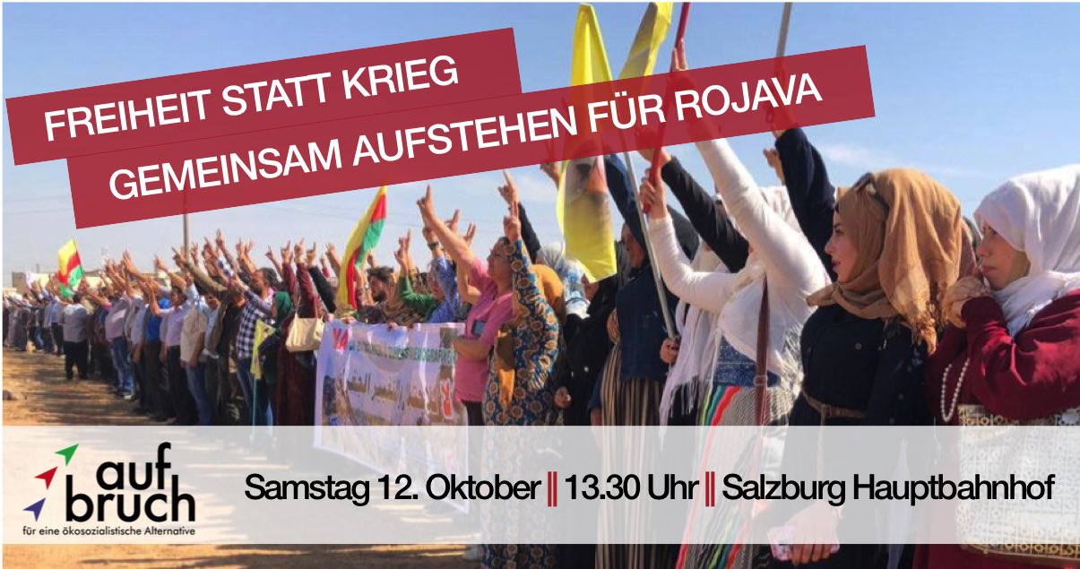 Demonstration Samstag, 12. Oktober 13:30 Uhr Südtiroler Platz beim Hauptbahnhof, Salzburg Das autoritäre Erdogan-Regime der Türkei hat einen weiteren Angriffskrieg auf Nordsyrien gestartet und will damit die demokratische Selbstverwaltung zerstören. Die türkische Regierung beansprucht einen 30 Kilometer breiten Streifen syrischen Territoriums und hat angekündigt rund 2 Millionen Flüchtlinge dort anzusiedeln. Hierfür müsste sie die dortige … Sofortiger Stopp des türkischen Angriffskriegs in Nordsyrien – Solidarität mit dem Widerstand weiterlesen